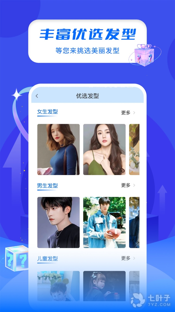 2、换发型屋是时下流行的手机换发型软件,作为一款可以换发型的美图软件,丰富的发型设计素材,支持发型设计、脸型搭配、个性发色定制等功能,潮男靓女网上换发型必备神器,欢迎下载使用