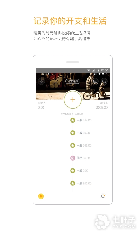 3、软件有着非常小清新的界面,再加上色彩的搭配和时间轴的特有功能使得软件在颜值上就可征服一大批用户。当然了,软件的功能也是非常丰富的,更有直观的统计分析提供给大家。推荐给有记账习惯的用户下载使用