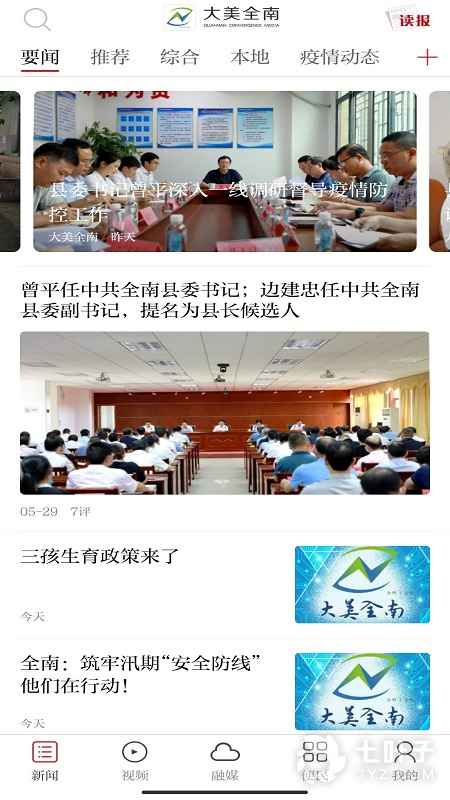 2、大美全南app是全南县的官方新闻媒体平台,里面为大家推送很多方面的新闻资讯,有本地的,也有全国,让大家有一个可以全方面了解时事的平台,另外这里还有各种城市活动的汇总,方便用户去了解自己的城市面貌,掌握更多的信息