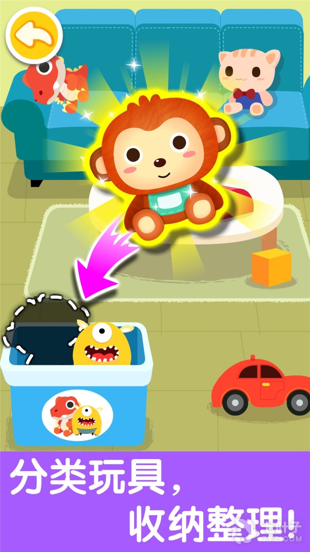 1、拥有全新的动画场景,让宝宝们可以在游戏中,边看边学会生活技能,在不知不觉中,爱上整理房间