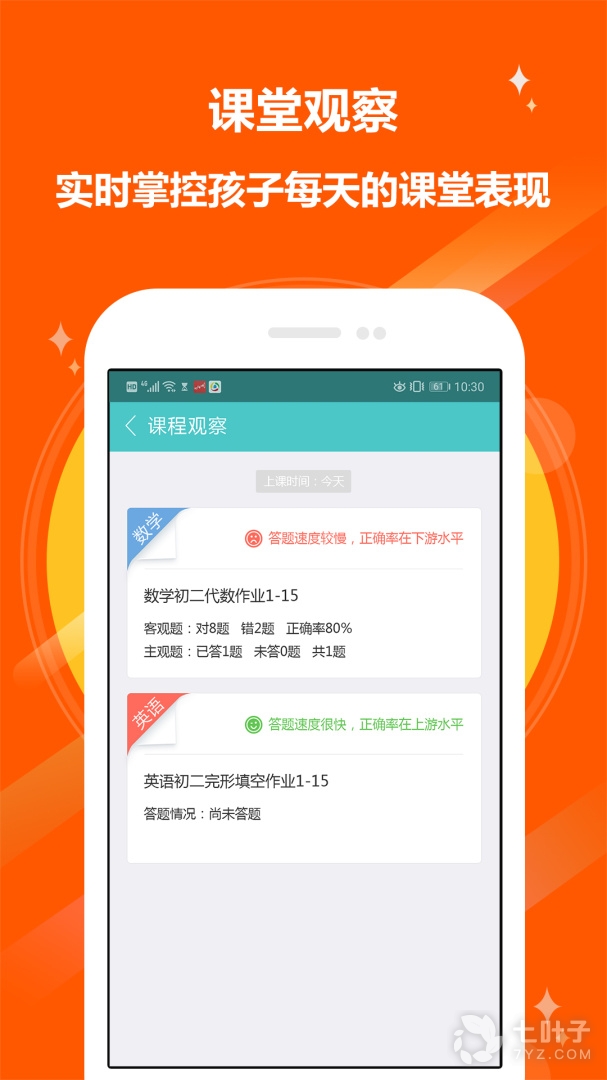 1、课堂观察孩子每天的课堂表现,包括答题正确率、答题次数等,家长均可获得数据反馈