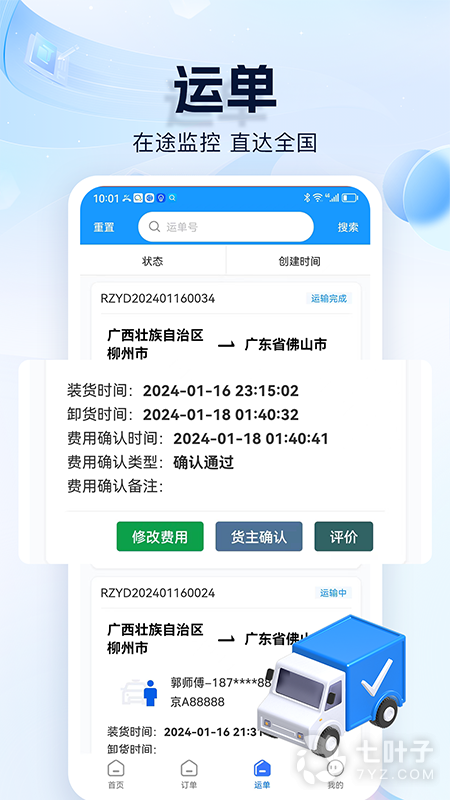 3、安装了实时追踪功能,让货主实时追踪货运进程,了解运输情况和货物状态。