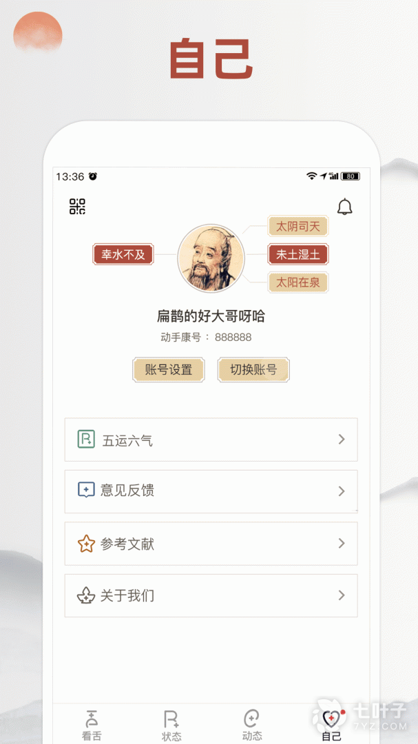 1、看舌头,掌上拍照健康识别平台。软件通过手机拍照舌头,即可查询自己身体健康状况,后台中医大数据算法,帮助定制量身的健康管理计划,随时管理身体健康