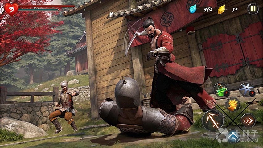 敌人忍者未来蹦出一个又一个!你必须杀死所有这些使用传说中的忍者剑!