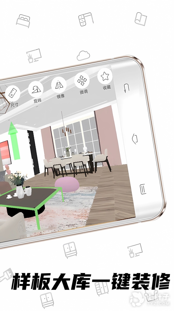 5、家具模型100万模型任你收藏,设计更尽兴!App内支持人工智能,一键拖入整个房间的模型,自动智能摆放,高速出图!技术局