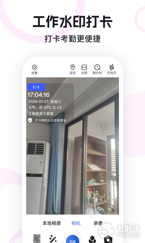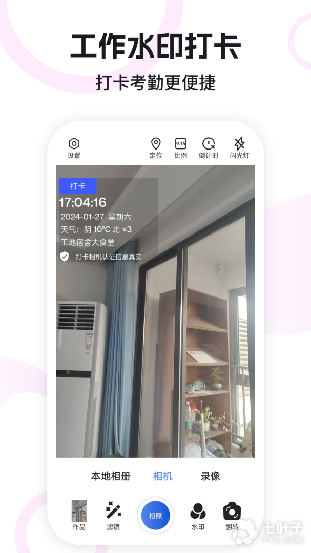 一款专业为照片拍摄添加水印的水印相机拍照软件。选好水印、一键拍照,水印照片自动生成,一键保存到手机相册。让你边拍照边打卡,时刻记录你的生活!拥有多种水印模板,满足考勤打卡、现场拍照、工作记录等需求,是众多工作者的优先选择。