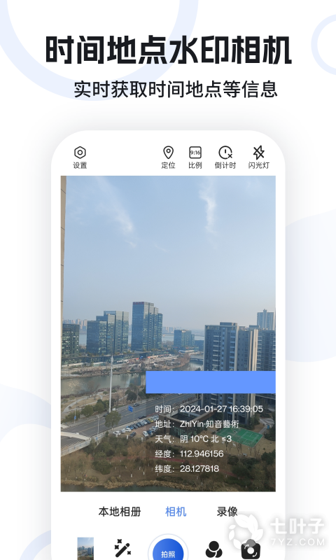 2.实时记录拍摄地点的经纬度信息,并在水印中显示,方便用户追溯拍摄地点。