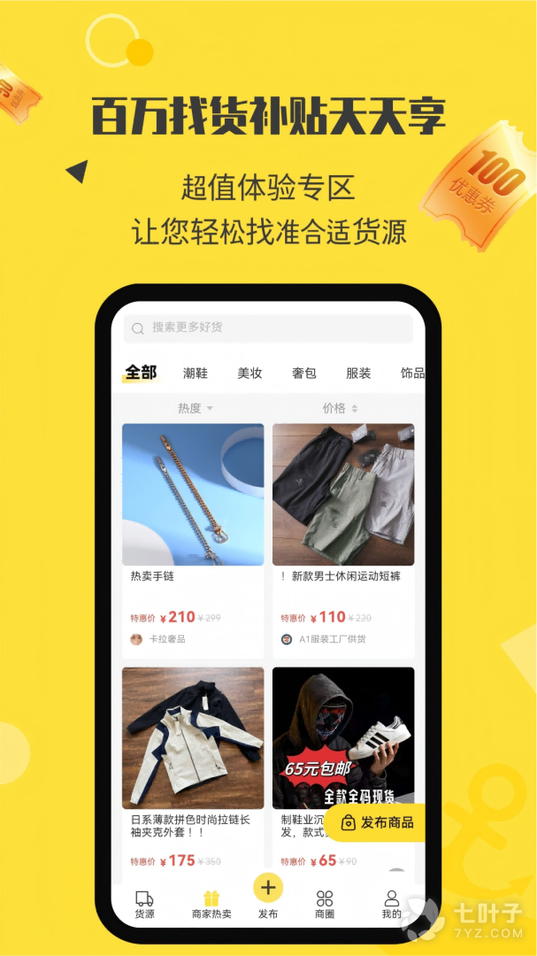 货源实时更新,超热门商品信息随时刷,海量一手货源看到眼花,进货就像在逛淘宝。