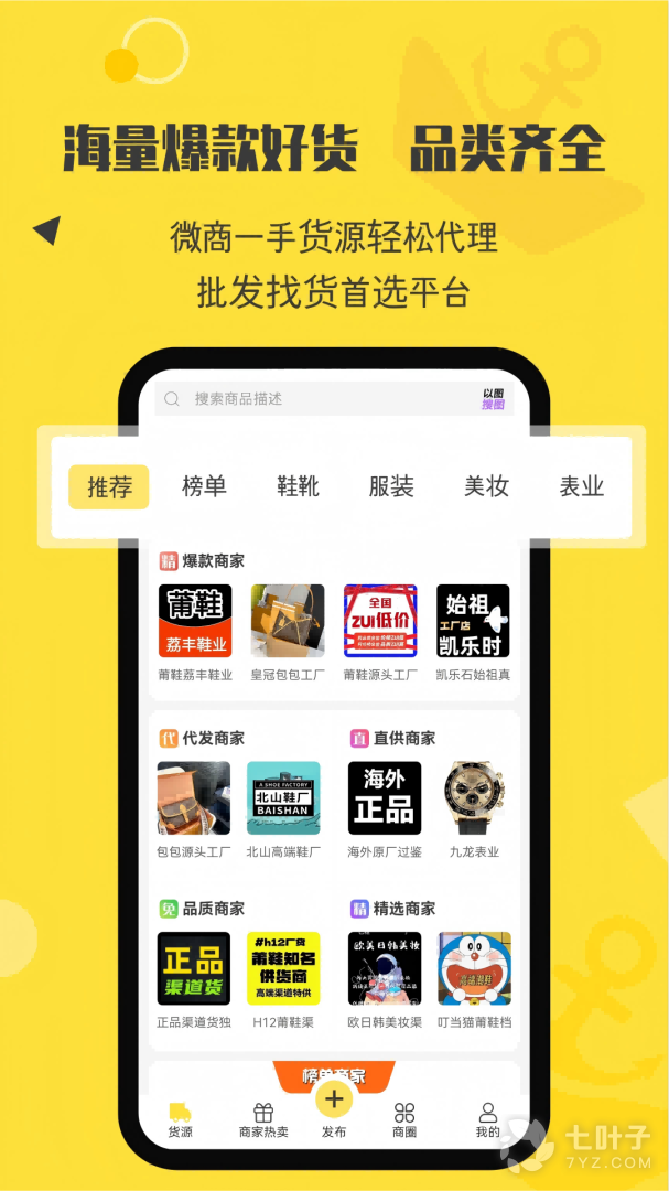微商码头货源批发软件,各类热门爆款货源任您挑选:男装、女装、童装、美妆用品、化妆品、手表、莆田鞋、零食、生鲜水果、护肤品...让您在家就能享受逛批发市场一样得体验。