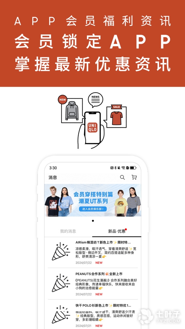 2、优衣库能够让用户了解优衣库的商品手册展示商品精美图片,软件还有多样的新品的优惠,它能够让用户轻松地查找到附近的门店内容,用户们可以在这里查找到优衣库的海量的产品,它为广大消费者提供便捷的商品查询功能