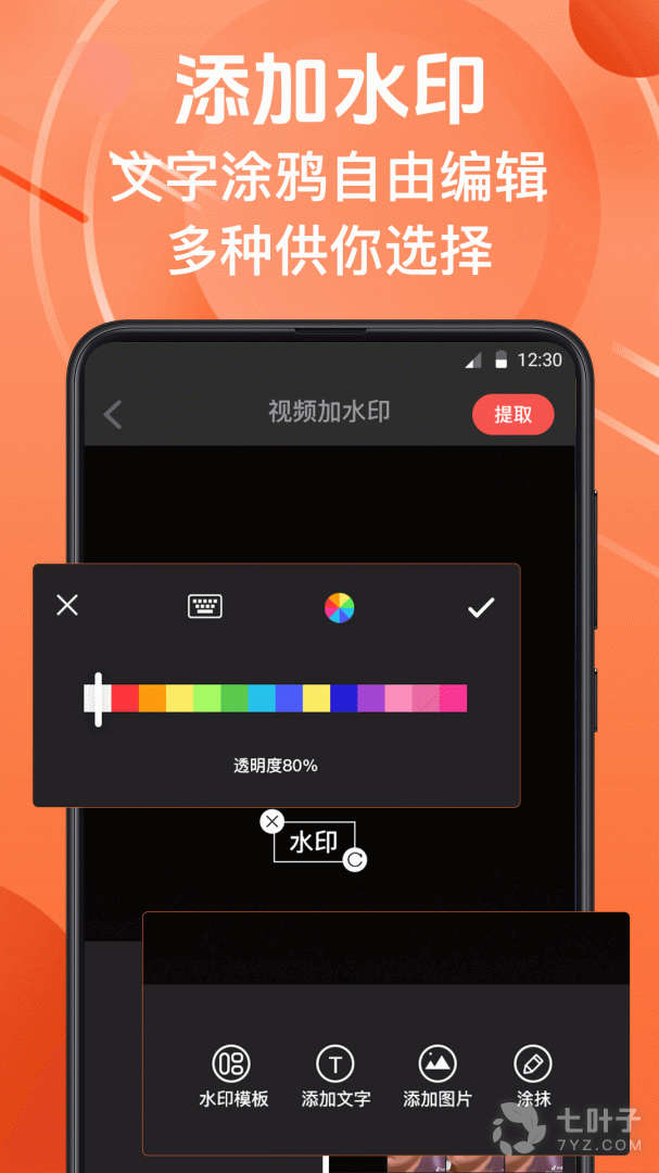 4、视频水印,包括视频加文字、加水印图标、做MV特效、美颜拍摄、剪裁、滤镜、动图贴纸、音乐