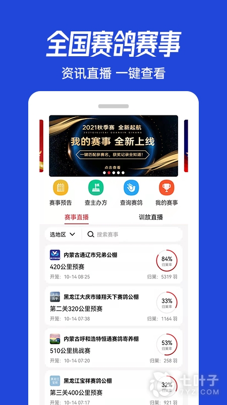 2、平台拥有鸽闻资讯,赛事直播,成绩查询,我的财务,探视视频等等功能服务,可以帮助用户更好的玩转赛鸽