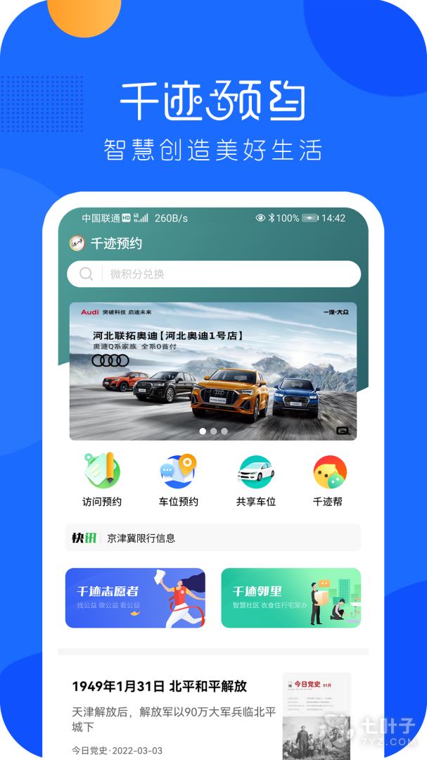 1、千迹预约APP是款功能强大的智能城市生活服务软件。它支持同城各种场景预约功能,包括停车场预约、酒店预约等功能,让大家的出行生活变的更加便捷。软件界面简洁,操作简单,非常好用