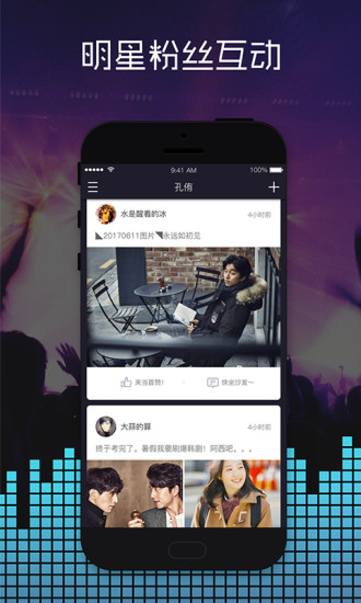 5、专为粉丝打造的粉丝追星服务平台,让粉丝轻轻松松即时了解爱豆微博、Instagram、Facebook、Twitter等社交动态信息,随时随地紧紧守护自己的超级明星