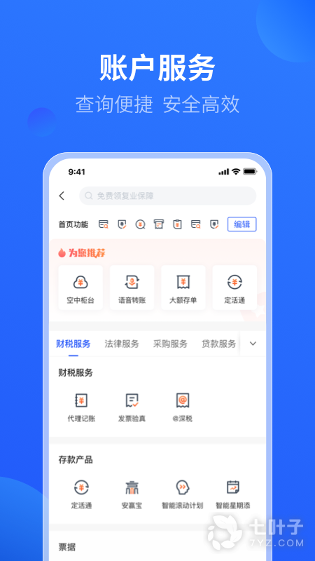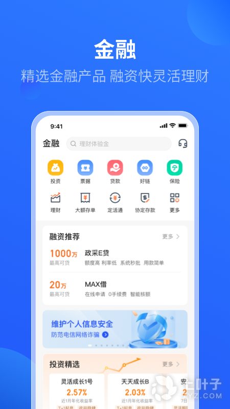 2、无论是企业用户还是个人用户,都可使用,全天二十四个小时不间断的服务,各种各样的功能,这里都有,精选的金融产品,灵活的融资理财,免费便捷的账户服务