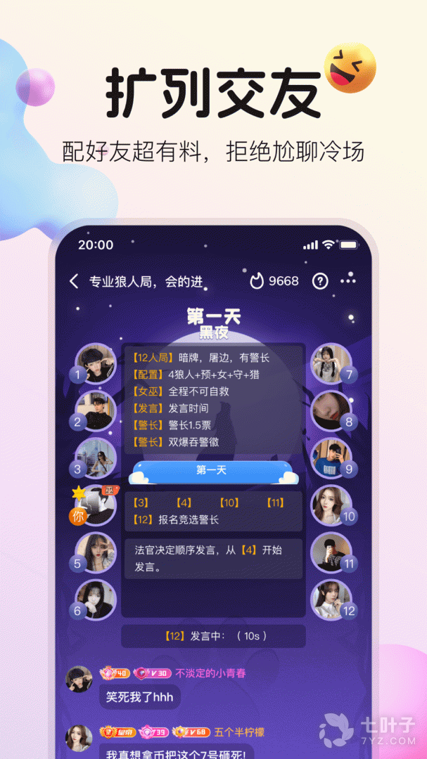 -「狼人杀」:化身村民、狼人或其他神秘角色,体验独特的角色扮演乐趣,让游戏充满更多变数与惊喜。