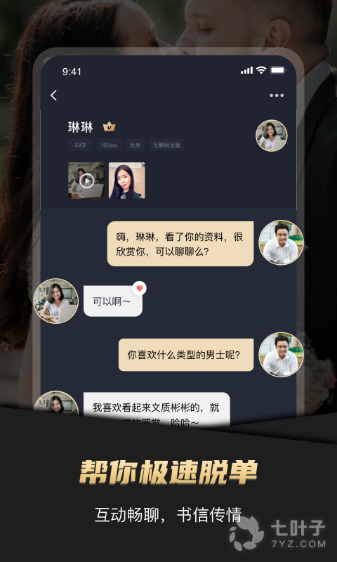 1、悦缘婚恋免费版,专为城市单身男女准备的交友平台。海量真实用户,金融级别AI智能认证,帮助你相亲找对象,快速脱单,牵手幸福。找姻缘就上悦缘婚恋