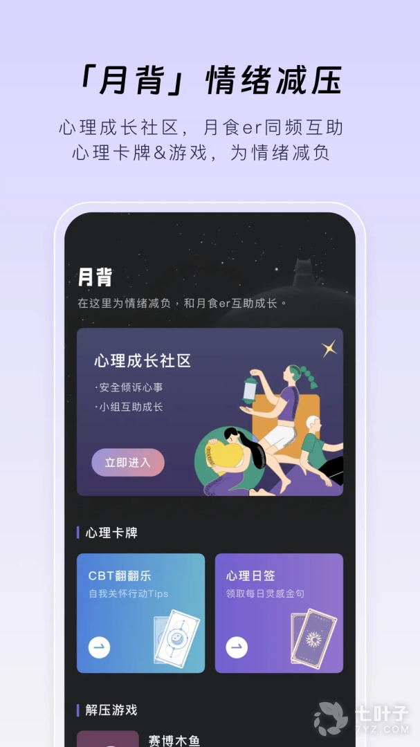 月食APP提供情绪舒缓、减压助眠、互助倾诉、心理测试、亲密关系提升、心理科普等,一站式解决多层次心理需求。