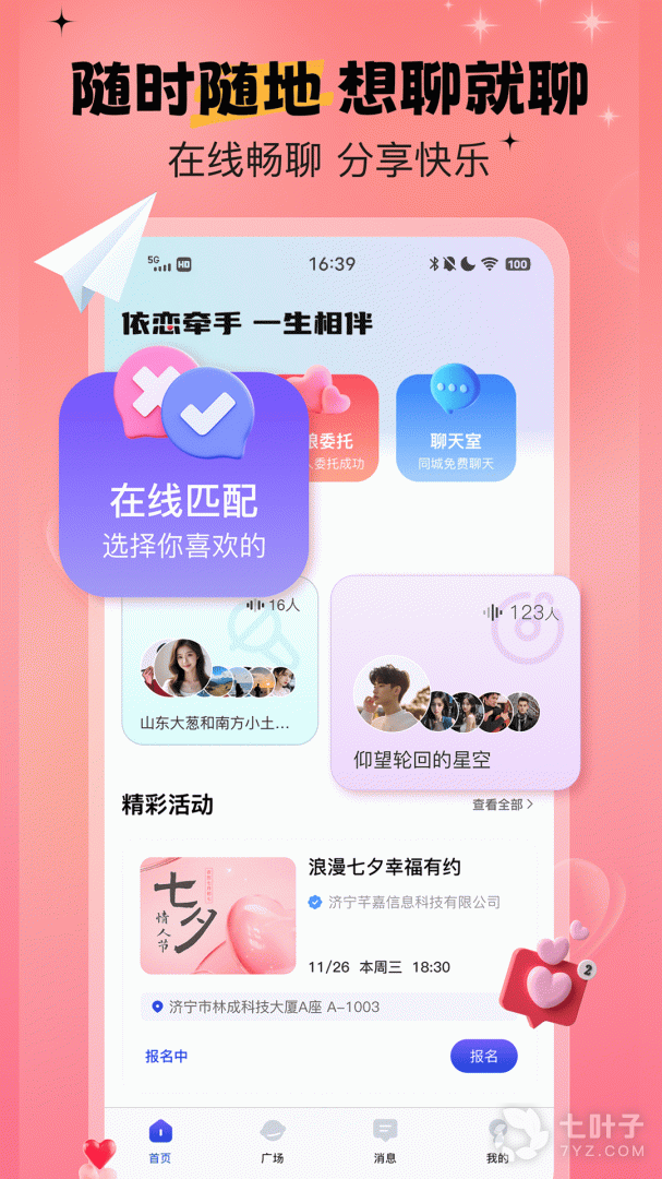 【附近交友】一键和陌生人聊天,同城交友,更有利于进行附近约会处CP和面对面沟通。