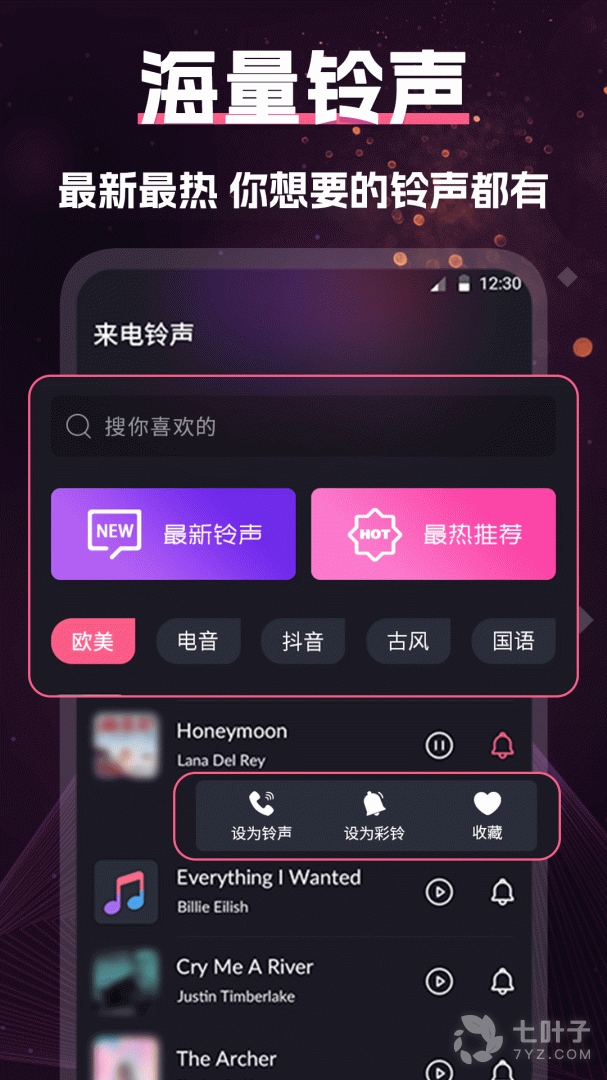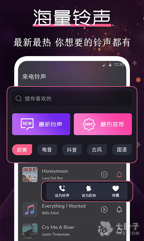 2、合时下热门、极新百万铃声,轻松一键设置,时刻紧跟当下潮流