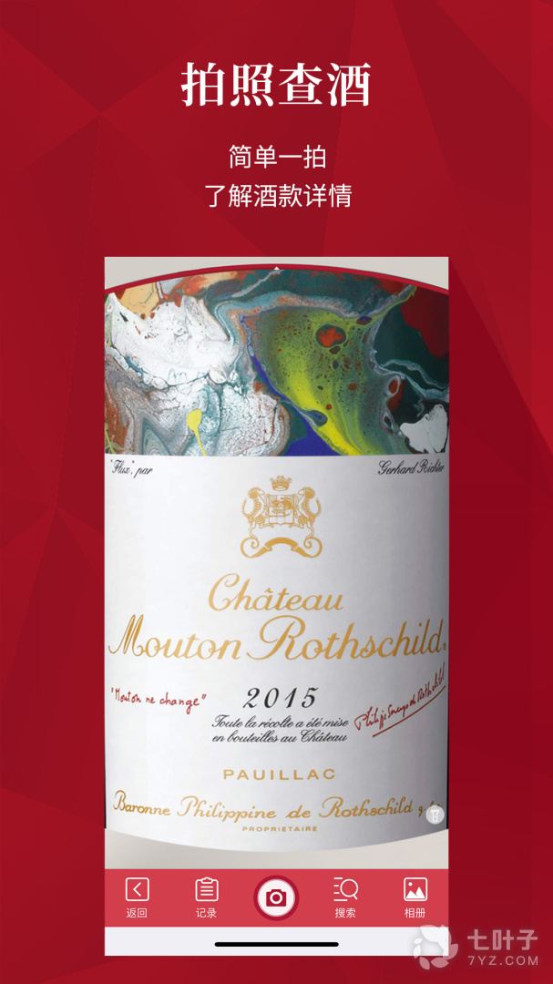 特色拍照查酒功能,无需费力辨别酒标上的外文字母,只要简单拍拍酒标,或将相册中的酒标图片上传,立即可获取酒款的酒庄、产区、品种、风味、名家评分和参考信息等信息。