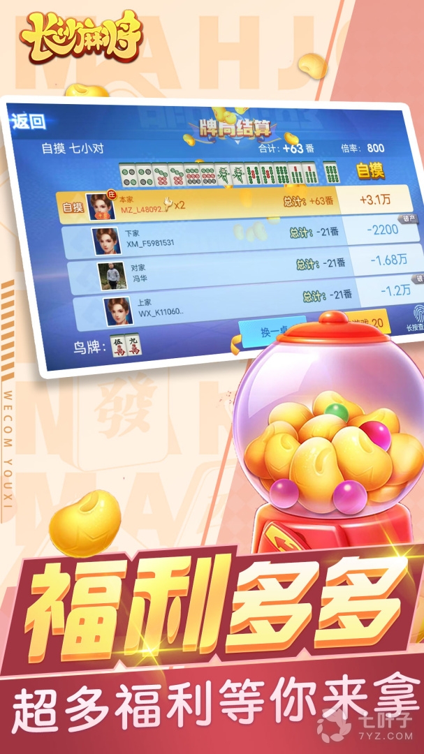 3、专门为长沙地区的玩家带来了充满特色的当地麻将玩法,百分百还原线下麻将游戏玩法,同时随便玩长沙麻将还为玩家们准备了丰富有趣的活动,满满的福利等你登录来领取,现在下载随便玩长沙麻将,一起来和全国各地的玩家竞技吧