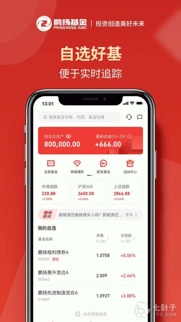 2、鹏扬好基通,投资创造美好未来,这是一个非常好用的基金股票投资平台,鹏扬基金遵循“专业稳健,回报信任”的经营宗旨,建立完备的投研体系,构建完善的产品线,鹏扬好基通app