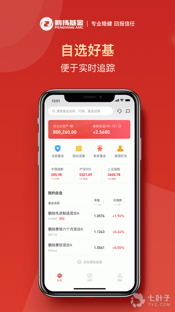 3.自选基金:自动加入持有基金,实时追踪关注基金;