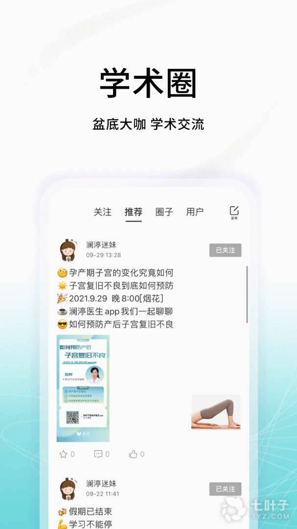 澜渟医生是盆底医者的朋友圈,可以关注盆底领域的专家,了解行业动态。