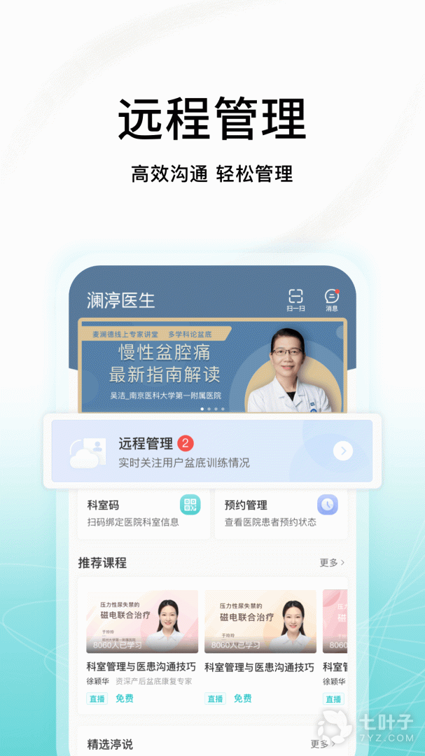 澜渟医生是盆底医者的专业内容管理平台,方便医者管理名下用户,管理训练方案,推送定制方案。