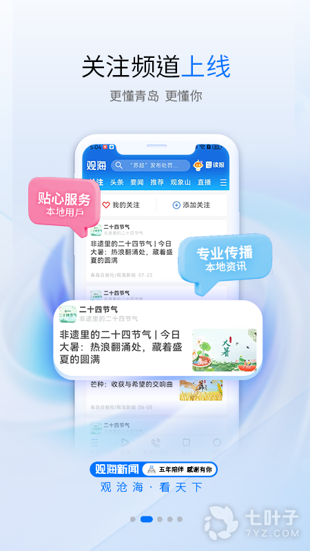 新闻资讯方面,融合人工智能、大数据、5G等新一代信息技术,推出个性化推荐、虚拟新闻主播、智能区域定位等产品,集合青岛日报社(集团)旗下所有优质内容和栏目,提供有速度、有高度、有深度、有温度的新闻。同时,开放平台资源,培育观海新闻独特的UGC用户生产生态。投诉受理方面,与青岛市政务服务热线12345联动,围绕“我爱青岛·我有不满·我要说话”民声倾听主题活动,发挥党媒舆论监督优势,共同打造全市媒体网端投诉受理第一平台,实现“手机一点,政府督办”,开设“我要投诉”“部门直达”“办理排行”“记者追访”“进度查询”等栏目,听民声、解民忧。智能服务方面,集合青岛最新、最热的服务类小程序、办事平台等,提供就业、就医、家政、培训、出行、违章查询等各项服务,做智慧城市的先行者。