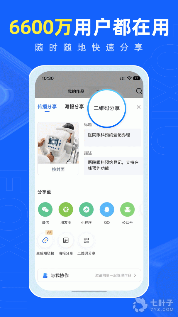 1、作品支持一键分享至、朋友圈、微博、QQ、QQ空间等媒体,实现高效传播精准营销,刷爆朋友圈