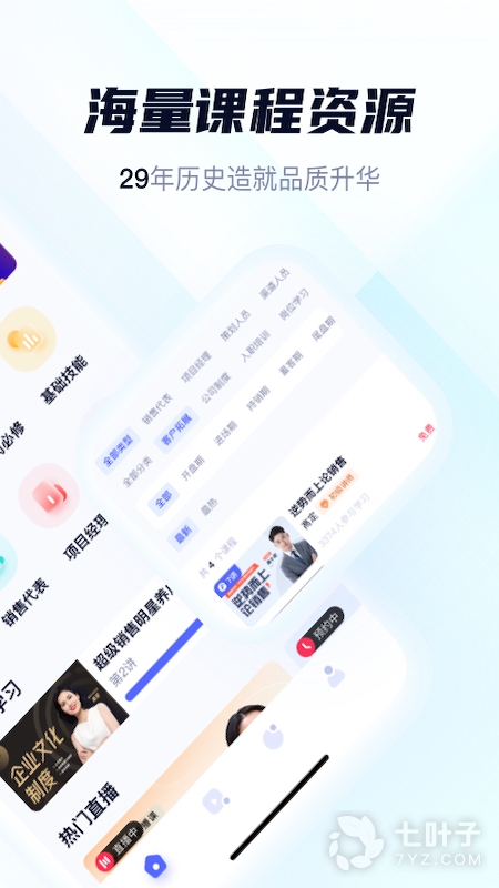 世联云学院是一款很是专业的培训服务平台,世联云学院主要是企业用来培训销售团队,世联云学院根据每个销售人员提供针对性的培训方案,并且提供考核的服务,还有专属的直播课程可以观看学习,帮助大家提升学习效率,能将所学的知识内容用到实处,提高业绩。