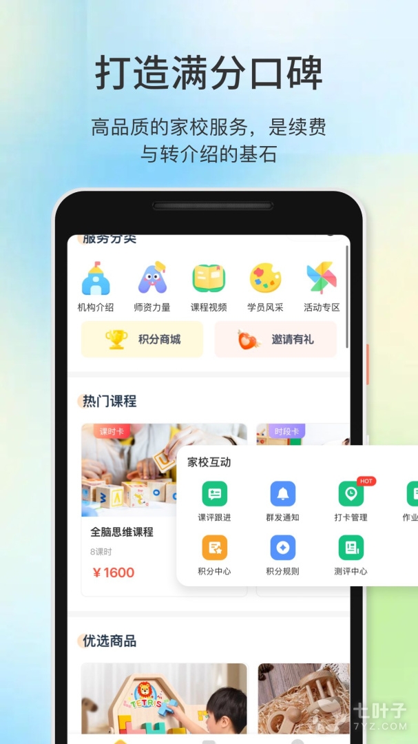 -协作:机构所有者带领教务、老师,共同管理机构内班级与学员