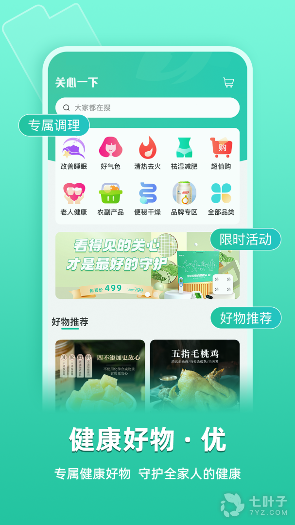 1、调理商城:根据个人和家庭健康状况推送专属调理产品,品类丰富