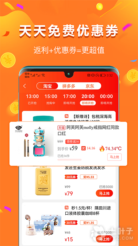 1、优惠购物,每天发放更多的优惠券;