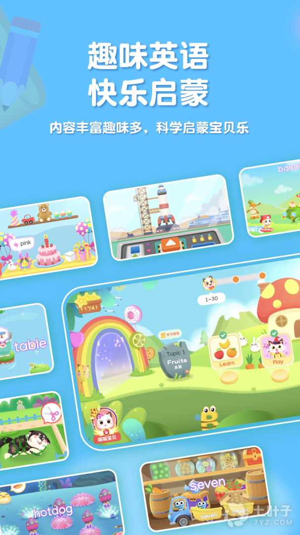 2、贴心简洁的英语启蒙教育,用每日打卡学习和游戏学习教学法为核心,让孩子们真正意义上的爱上英语,轻松学习英语。如有需要快来下载吧