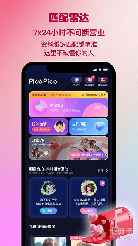 2.picopico专门为年轻人建立简单真实的CP匹配,并已经创造了近一亿次充满爱意的相遇。