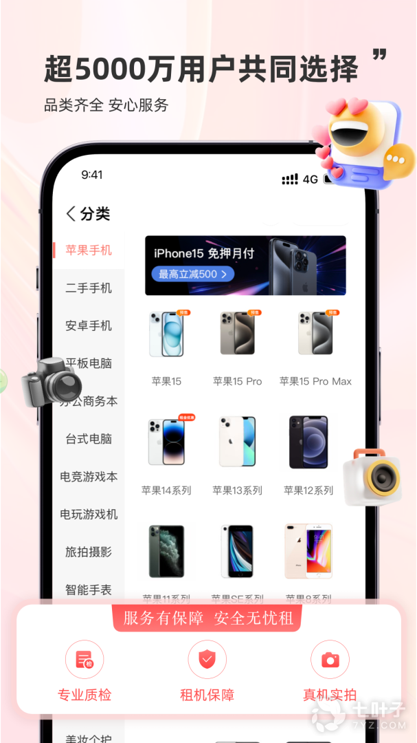 3、品类全,包括手机租赁,电脑租赁,摄影产品,游戏设备等线上租赁