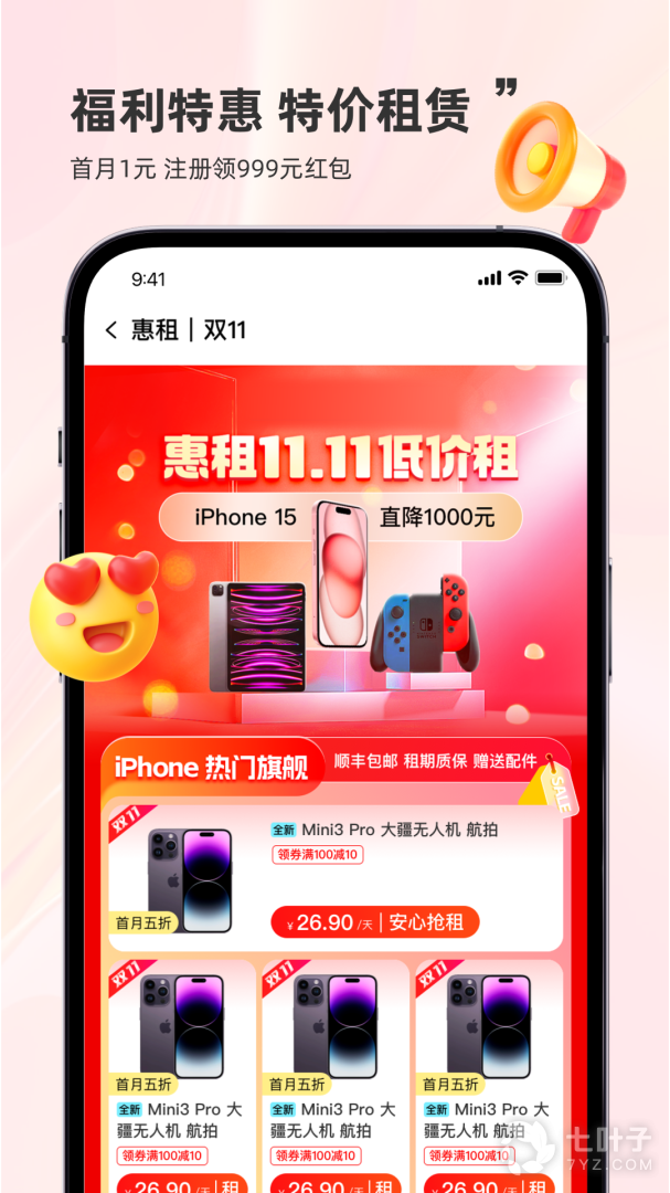 1、惠租软件中用户可以花更少的钱租到自己想要的商品,惠租品类全,覆盖品牌广,惠租新人还有超多福利