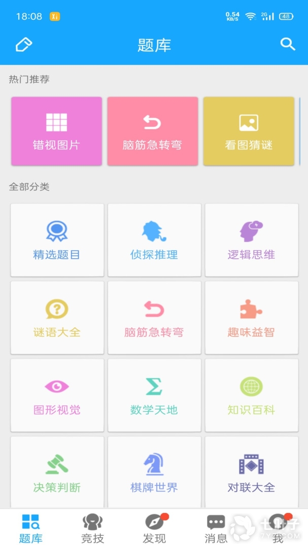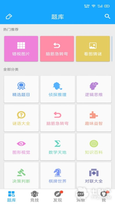 海量中文智力题库,每日智力题更新,包含各类逻辑游戏、侦探推理题目、门萨智商测试题、疯狂猜成语、儿童脑筋急转弯大全、恐怖漫画馆、趣味数独世界、小学奥数等烧脑益智题。通过各类有趣的猜谜问答游戏训练你的思维,让你越玩越聪明!
