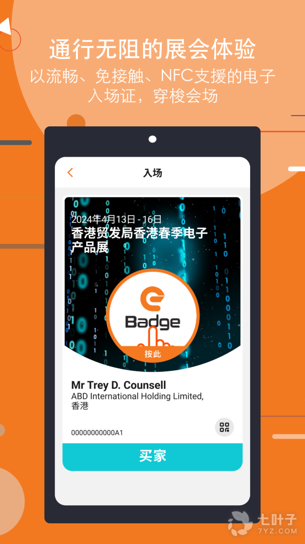 - 以流畅、免接触、NFC支援的电子入场证,穿梭会场