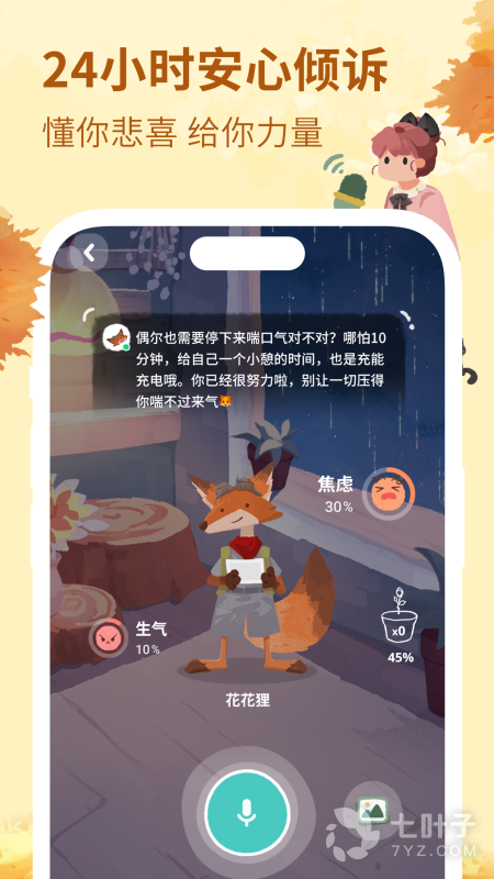 1、用户可以随时在这里倾诉情绪,并得到专业的建议,大家能充分的表达自己的情感问题,并得到专业的建议和解决方,虚拟伙伴的语音分析能够及时了解用户的情感变化,提供更好的咨询服务,一对一服务能够更好的针对用户情况提供解决方案