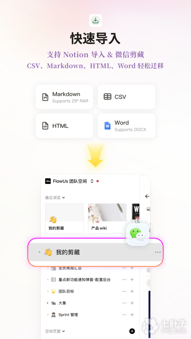 2、FlowUs息流,专为职场打工人设计的办公助手,可以提高个人的工作效率和团队之间的协作能力。软件拥有丰富的视图,目录、时间轴、收集表、表格、看板、画廊、日历等,用户可以一键创建视图,记录和安排工作内容。软件的功能丰富且全面是,是打工人必备的工作助手