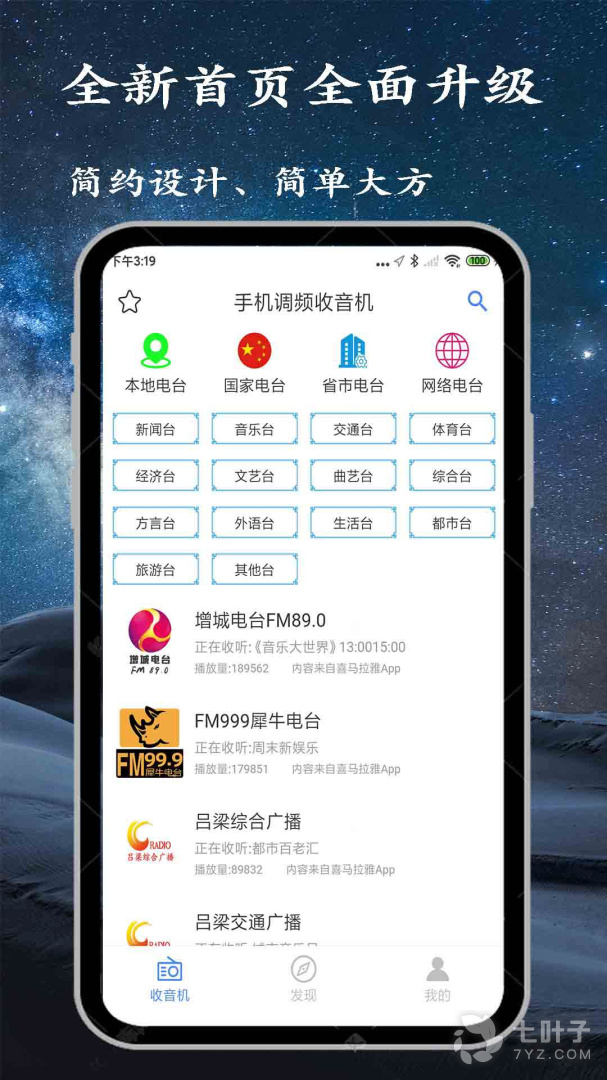 3、手机调频收音机,支持全球广播电台,几千个广播电台频道全部免费试听,为您呈现最舒适的手机收音体验。本次放出手机调频收音机安卓apk下载