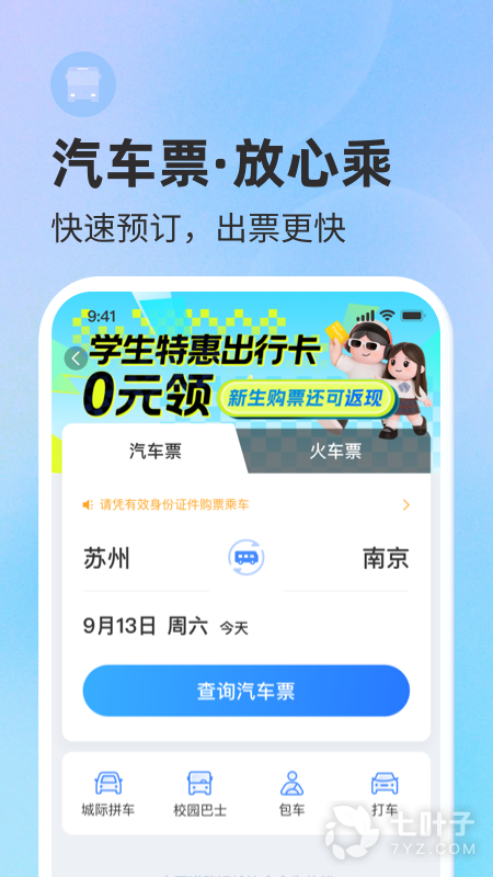 1、【汽车票】随时随地预订汽车票,无需排队,在线退票有保障;