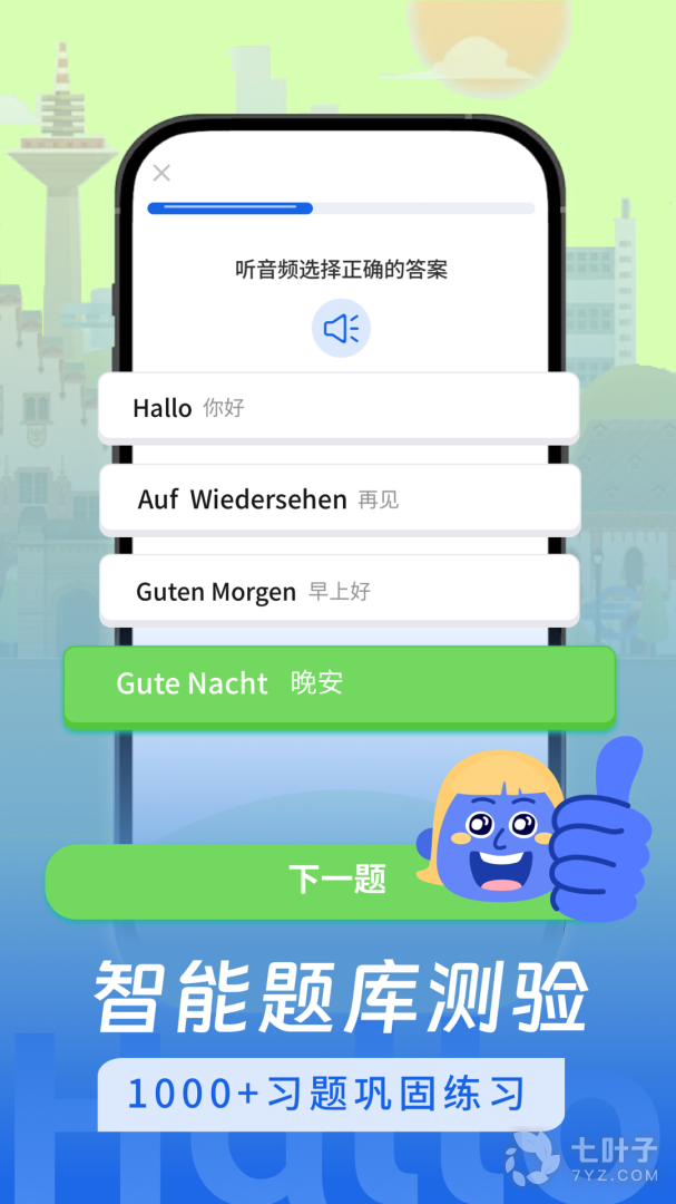 4、德语学习是一款非常实用的语音学习软件,专业的课程指导,从字母发音开始练习,帮助用户快速掌握基础内容,每天都会对之前学习过的内容加以复习,巩固知识,高效率学习,让学习能够更加轻松