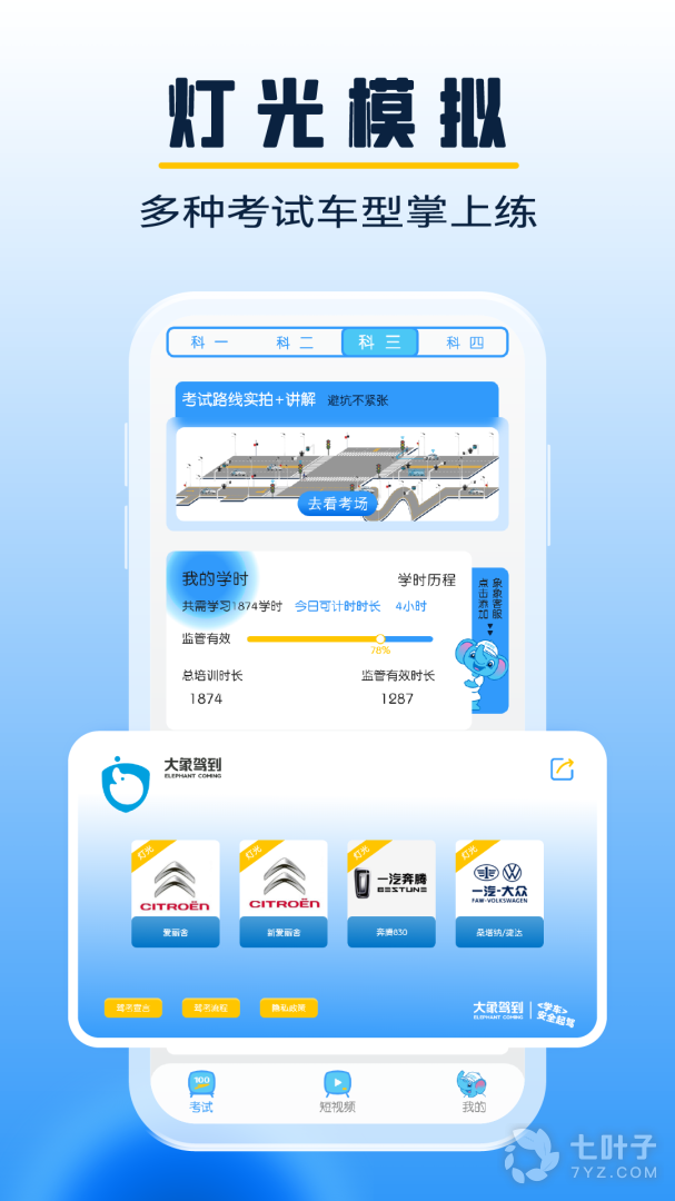 2、大象驾到是款专业的智能驾校知识以及题目练习软件,题库多,还有线上模拟驾驶功能,并且专家课程还能够帮助用户进行安全知识培训,驾驶车辆最为重要的就是要保证安全,同时还有很多不同驾照类型,欢迎大家来