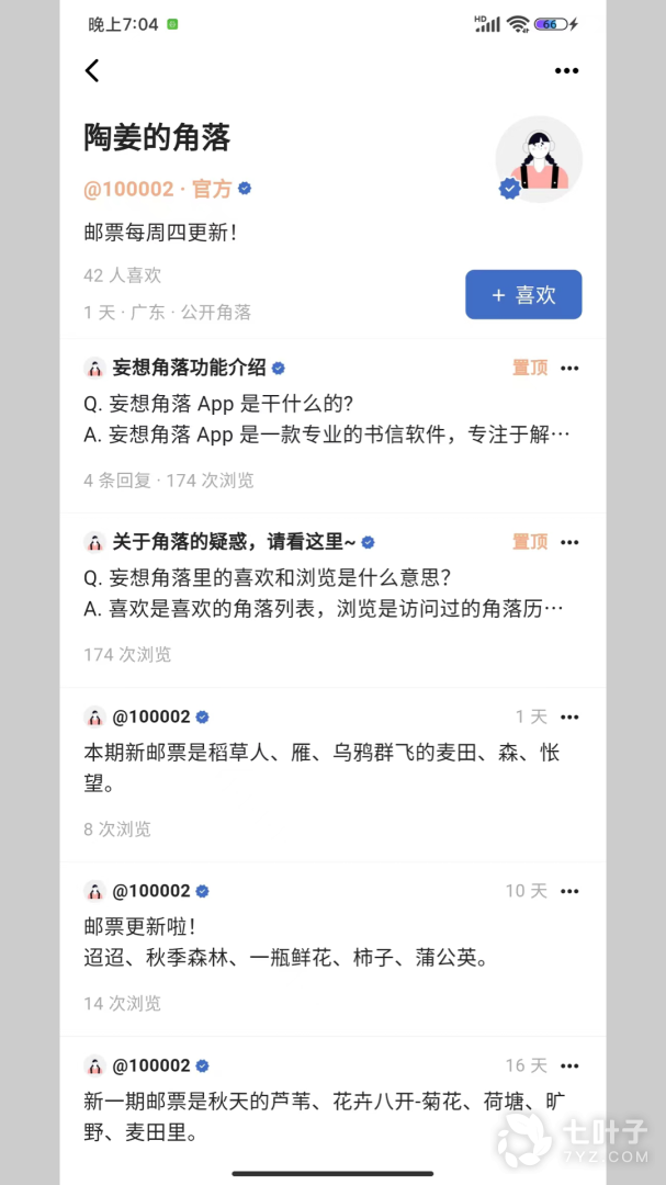 1、为大家带来妄想角落,妄想角落带你重温美好的书信生活,选择感兴趣的话题进行投稿,发表你独特的观点,给思念的人写信,体验从前车马、邮件都慢的人生
