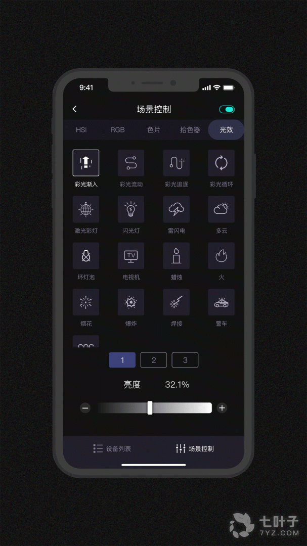 强大的自由选择各种灯光!完美的设备内容,随时随地进行颜色寻找,快速的完成灯光秀,带给你全新的体验